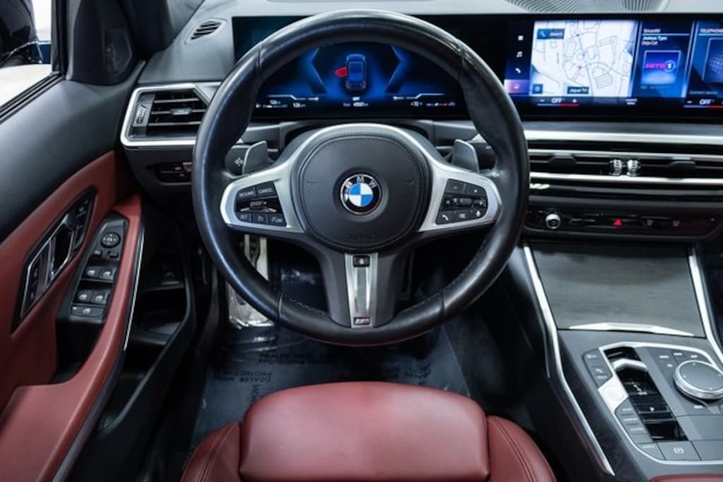 Black Sapphire Metallic 2023 BMW 3 Series 330i xDrive AWD, Tacora Red Perforated SensaTec Interior, Live Cockpit Pro w/ Navigation, Rear View Camera, Harman Kardon Surround Sound, Active Blind Spot Detection, Active Driving Assistant, Apple CarPlay & Android Auto Compatibility, BMW Curved Display w/HUD, Comfort Access Keyless Entry, Connected Package Pro, Driving Assistance Package, BMW Assist eCall, Heated Front Seats, Heated Steering Wheel, Lane Departure Warning System, LED Lights w/Cornering Lights, M Sport Package, M Sport Package Pro, Park Distance Control, Power moonroof, Premium Package, Remote Engine Start, Shadowline Package, 19" M Double-Spoke Alloy Wheels and More. Call TODAY to schedule a test drive!