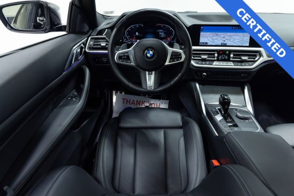 Brooklyn Gray Metallic 2023 BMW 4 Series 430i xDrive AWD, Black Perforated SensaTec Interior, Live Cockpit Pro w/ Navigation, Rear View Camera, Aerodynamic Kit, Apple CarPlay & Android Auto Compatibility, Black Mirror Caps, Comfort Access Keyless Entry, Connected Package Pro, BMW Assist eCall, Extended Shadowline Trim, Heated Front Seats, Heated Steering Wheel, LED Fog Lights, M Shadowline Lights, M Sport Package Pro, Premium Package, Rear Spoiler, Remote Engine Start, Shadowline Package, Variable Sport Steering, 19" M Double-Spoke Alloy Wheels and More. Call TODAY to schedule a test drive!