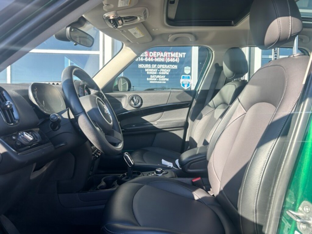 This Cooper Countryman is well equipped with ABS brakes, Alloy wheels, Electronic Stability Control, Heated door mirrors, Illuminated entry, Low tire pressure warning, Power moonroof, Remote keyless entry, Traction control, 4-Wheel Disc Brakes, 6 Speakers, Air Conditioning, Apple CarPlay Compatibility, Auto High-beam Headlights, Axle Ratio: 4.176, Brake assist, Bumpers: body-color, ConnectedDrive Services, Delay-off headlights, Driver door bin, Driver vanity mirror, Dual front impact airbags, Dual front side impact airbags, Emergency communication system: MINI Assist eCall, Enhanced USB & Bluetooth, Exterior Parking Camera Rear, Four wheel independent suspension, Front anti-roll bar, Front Bucket Seats, Front Center Armrest w/Storage, Front fog lights, Front reading lights, Fully automatic headlights, Knee airbag, Leather steering wheel, Media Display, MINI Assist eCall, MINI Connected, MINI TeleServices, Occupant sensing airbag, Outside temperature display, Overhead airbag, Overhead console, Passenger door bin, Passenger Seat Height Adjustment, Passenger vanity mirror, Power door mirrors, Power steering, Power windows, Radio Control US, Radio data system, Radio: Touchscreen Media Display, Rain sensing wipers, Rear anti-roll bar, Rear window defroster, Rear window wiper, Remote Services, Sensatec Leatherette Upholstery, SiriusXM Satellite Radio, Speed control, Speed-sensing steering, Speed-Sensitive Wipers, Split folding rear seat, Sport steering wheel, Standard Suspension, Steering wheel mounted audio controls, Tachometer, Telescoping steering wheel, Tilt steering wheel, Trip computer, and Variably intermittent wipers.