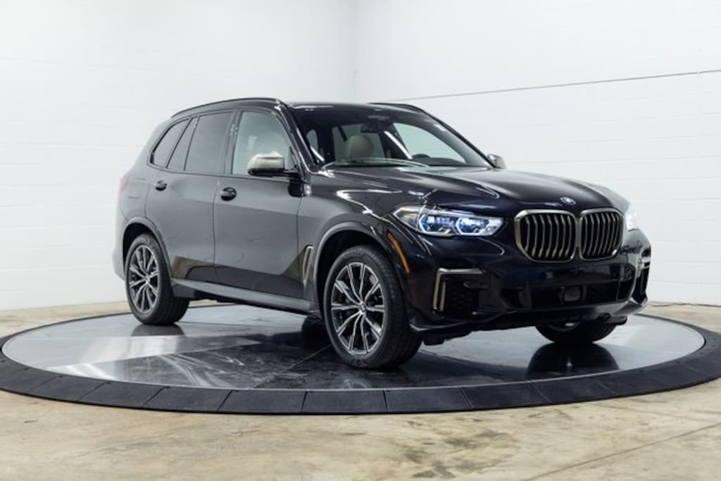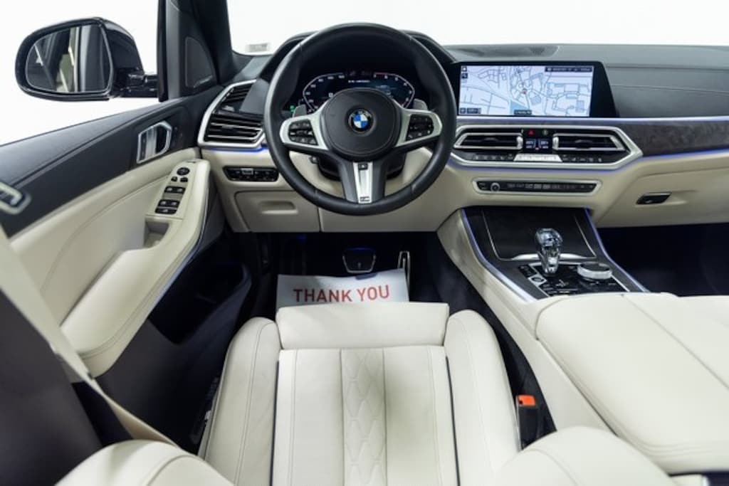 Black Sapphire Metallic 2022 BMW X5 M50i AWD, Ivory White Extended Merino Leather Interior, Live Cockpit Pro w/ Navigation, Rear View Camera w/ 3D Surround View, Active Driving Assistant Pro, Active Park Distance Control, Climate Comfort Package, Connected Package Pro, Drive Recorder, Driving Assistance Professional Package, BMW Assist eCall, Executive Package, Extended Traffic Jam Assistant, Front & Rear Heated Seats, Gesture Control, Glass Controls, harman/kardon Surround Sound System, Head-Up Display, Heated Front Armrests & Steering Wheel, Icon Adaptive LED Headlights w/Laserlight, Panoramic Sky Lounge LED Roof, Parking Assistant Plus, Rear Manual Side Window Shades, 20" M Star-Spoke Alloy Wheels and More. Call TODAY to schedule a test drive!