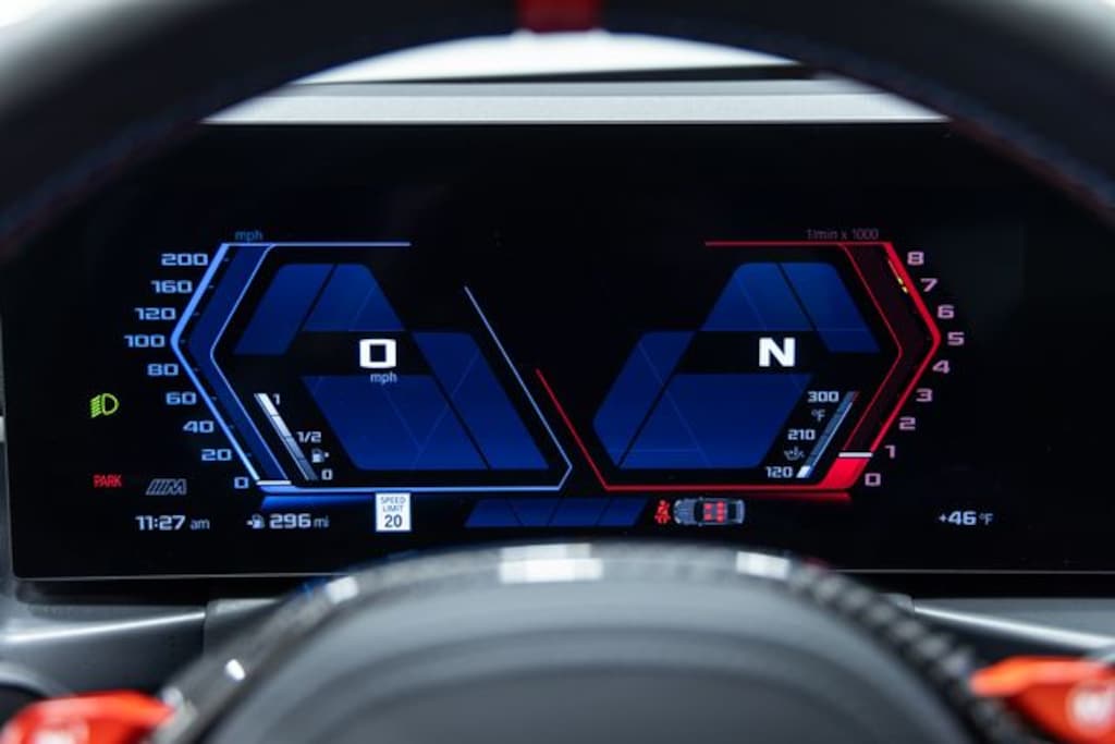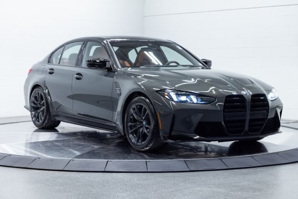 The exterior of this M3 is finished in the stunning Dravit Grey Metallic, complemented by the M Shadowline Lights and carbon fiber accents that exude a bold, aggressive presence. Step inside and you'll be greeted by the luxurious Merino leather upholstery, heated and ventilated front seats, and the advanced BMW Curved Display with Head-Up Display, providing you with a wealth of information at a glance.