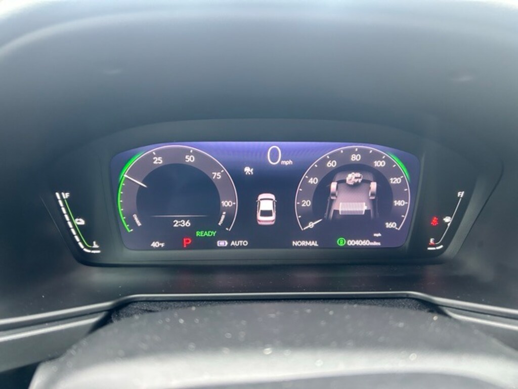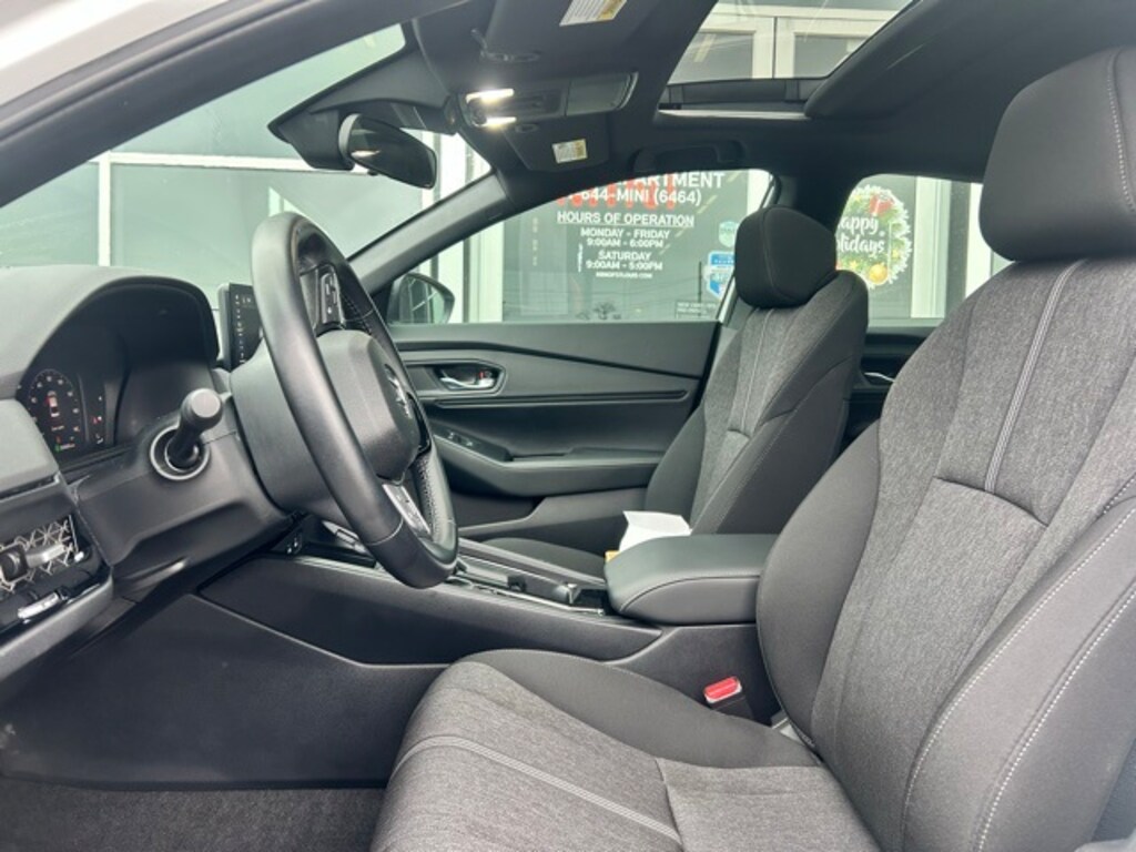 This Accord Hybrid is well equipped with Apple CarPlay/Android Auto, Auto High-beam Headlights, Blind Spot Information (BSI) System warning, Front dual zone A/C w/pollen filter, Power driver seat, 4-Wheel Disc Brakes, 8 Speakers, ABS brakes, Adaptive Cruise Control: Adaptive Cruise Control (ACC) with Low-Speed Follow, Air Conditioning, Alloy wheels, AM/FM radio, Automatic temperature control, Brake assist, Bumpers: body-color, Compass, Delay-off headlights, Driver door bin, Driver vanity mirror, Dual front impact airbags, Dual front side impact airbags, Electronic Stability Control, Emergency communication system: HondaLink, Exterior Parking Camera Rear, Fabric Seat Trim, Four wheel independent suspension, Front anti-roll bar, Front Bucket Seats, Front Center Armrest, Front reading lights, Fully automatic headlights, Illuminated entry, Knee airbag, Lane departure: Lane Keeping Assist System (LKAS) active, Leather Shift Knob, Leather steering wheel, Low tire pressure warning, Occupant sensing airbag, Outside temperature display, Overhead airbag, Overhead console, Panic alarm, Passenger door bin, Passenger vanity mirror, Power door mirrors, Power moonroof, Power steering, Power windows, Radio data system, Radio: 180-Watt Audio System, Rear anti-roll bar, Rear reading lights, Rear seat center armrest, Rear side impact airbag, Rear window defroster, Remote keyless entry, Security system, Speed control, Speed-sensing steering, Speed-Sensitive Wipers, Split folding rear seat, Spoiler, Steering wheel mounted audio controls, Telescoping steering wheel, Tilt steering wheel, Traction control, Trip computer, Variably intermittent wipers, and Wheels: 19" Black Alloy.