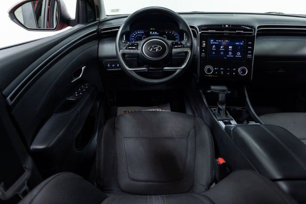 This Tucson is well equipped with Option Group 01, Apple CarPlay & Android Auto, Auto High-beam Headlights, Heated front seats, Power driver seat, Power Liftgate, 3.648 Axle Ratio, 4-Wheel Disc Brakes, 6 Speakers, ABS brakes, Air Conditioning, Alloy wheels, AM/FM radio: SiriusXM, Brake assist, Bumpers: body-color, Cargo Cover, Cargo Tray, Carpeted Floor Mats, Delay-off headlights, Driver door bin, Driver vanity mirror, Dual front impact airbags, Dual front side impact airbags, Electronic Stability Control, Emergency communication system: Blue Link Connected Car Service (3-year complimentary subscription), First Aid Kit, Four wheel independent suspension, Front and Rear Mudguards, Front anti-roll bar, Front Bucket Seats, Front Center Armrest, Front reading lights, Fully automatic headlights, H-Tex Seat Trim, Heated door mirrors, Heated Front Bucket Seats, Illuminated entry, Low tire pressure warning, Occupant sensing airbag, Outside temperature display, Overhead airbag, Overhead console, Panic alarm, Passenger door bin, Passenger vanity mirror, Power door mirrors, Power steering, Power windows, Radio data system, Radio: AM/FM/HD/SiriusXM Audio System, Rear anti-roll bar, Rear seat center armrest, Rear window defroster, Rear window wiper, Remote keyless entry, Roof rack: rails only, Security system, Speed control, Split folding rear seat, Spoiler, Stain & Odor Resistant Cloth Seat Trim, Steering wheel mounted audio controls, Tachometer, Telescoping steering wheel, Tilt steering wheel, Traction control, Trip computer, Turn signal indicator mirrors, Variably intermittent wipers, and Wheels: 17" x 7.0J" Alloy.