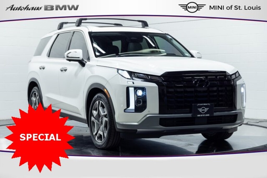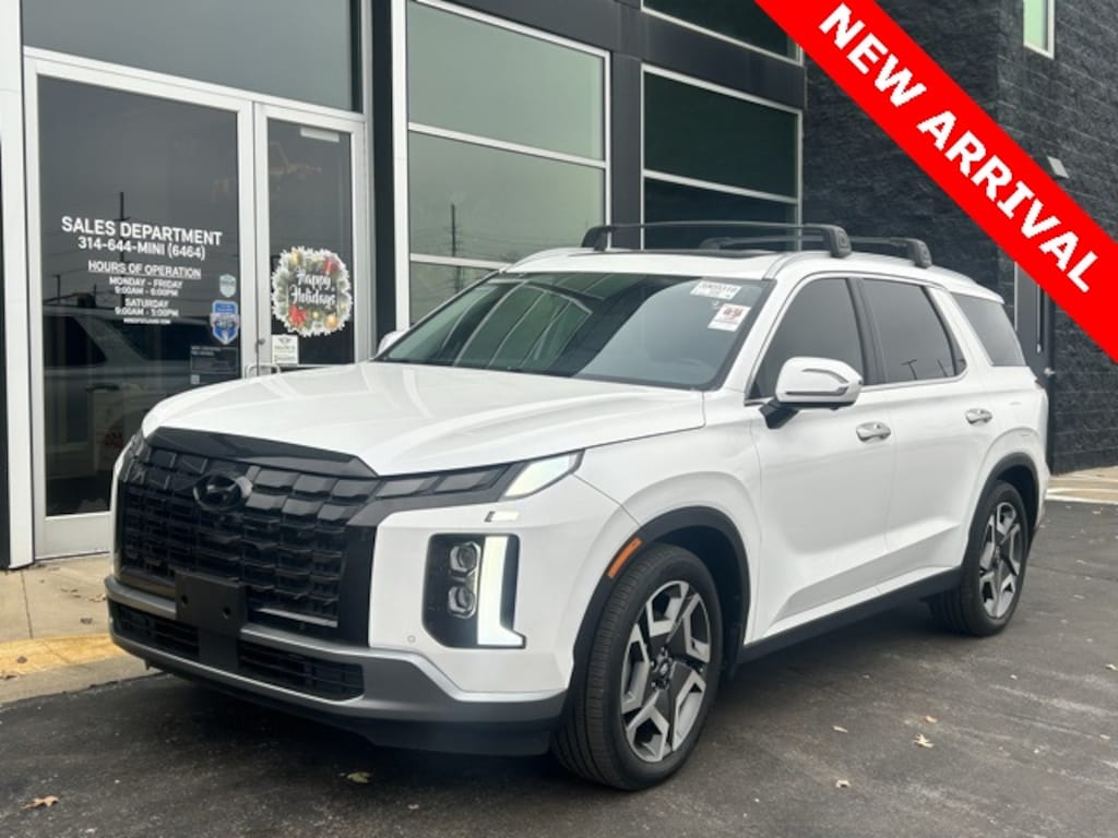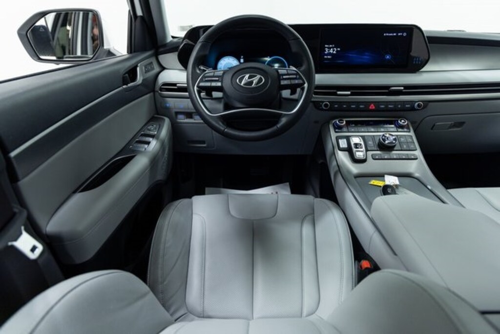 This Palisade is well equipped with 8-Passenger Bench Seating (12.3" Full-Digital Multi-Information Display, 8-Passenger Seating, Blind-Spot View Monitor, harman/kardon® Audio System, Option Group 03, Surround View Monitor, Ventilated Front & 2nd-Row Seats, and Wheels: 20" x 7.5J Alloy), Premium Package, Apple CarPlay & Android Auto, Auto High-beam Headlights, Exterior Parking Camera Rear, Power Liftgate, 3.648 Axle Ratio, 3rd row seats: split-bench, 4-Wheel Disc Brakes, 6 Speakers, ABS brakes, Air Conditioning, Alloy wheels, AM/FM radio: SiriusXM, Auto-dimming door mirrors, Auto-dimming Rear-View mirror, Automatic temperature control, Brake assist, Bumper Applique, Bumpers: body-color, Cargo Net, Carpeted Floor Mats, Delay-off headlights, Driver door bin, Driver vanity mirror, Dual front impact airbags, Dual front side impact airbags, Electronic Stability Control, Emergency communication system, Four wheel independent suspension, Front anti-roll bar, Front Bucket Seats, Front Center Armrest, Front dual zone A/C w/pollen filter, Front reading lights, Fully automatic headlights, H-Tex Leatherette Seat Trim, Heated door mirrors, Heated Front Bucket Seats, Heated front seats, Illuminated entry, Knee airbag, Low tire pressure warning, Mudguards, Navigation System w/6.5 touchscreen, Occupant sensing airbag, Outside temperature display, Overhead airbag, Overhead console, Panic alarm, Passenger door bin, Passenger vanity mirror, Power door mirrors, Power driver seat, Power passenger seat, Power steering, Power windows, Radio data system, Radio: AM/FM/MP3 Audio System, Rear air conditioning, Rear anti-roll bar, Rear audio controls, Rear reading lights, Rear side impact airbag, Rear window defroster, Rear window wiper, Reclining 3rd row seat, Remote keyless entry, Roof Rack Cross Rails, Security system, Speed control, Speed-sensing steering, Split folding rear seat, Spoiler, Steering wheel mounted audio controls, Tachometer, Telescoping steering wheel, Tilt steering wheel, Traction control, Trip computer, Turn signal indicator mirrors, and Variably intermittent wipers.