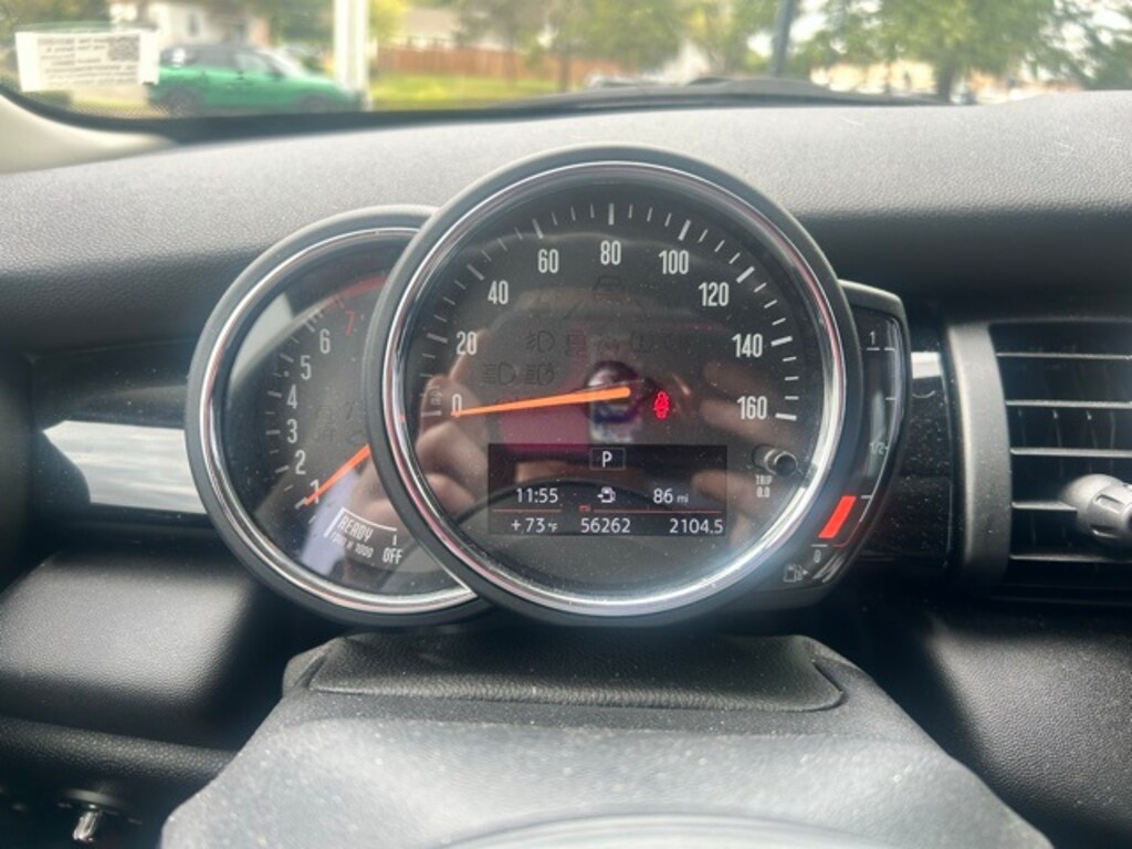 This Cooper is well equipped with MINI Excitement Package, Signature Trim (Automatic Climate Control, Comfort Access Keyless Entry, Panoramic Moonroof, Piano Black Interior Surface, and White Turn-Signal Lights), Exterior Parking Camera Rear, Heated Front Seats, Illuminated entry, Wheels: 16" x 6.5" Victory Spoke Black Alloy, 4-Wheel Disc Brakes, 6 Speakers, ABS brakes, Air Conditioning, Alloy wheels, AM/FM radio, AM/FM Stereo, Brake assist, Bumpers: body-color, Delay-off headlights, Driver door bin, Driver vanity mirror, Dual front impact airbags, Dual front side impact airbags, Electronic Stability Control, Emergency communication system, Four wheel independent suspension, Front anti-roll bar, Front Bucket Seats, Front Center Armrest w/Storage, Front reading lights, Fully automatic headlights, Heated door mirrors, Knee airbag, Leather steering wheel, Low tire pressure warning, MINI Connected, Occupant sensing airbag, Outside temperature display, Overhead airbag, Overhead console, Passenger door bin, Passenger vanity mirror, Power door mirrors, Power steering, Power windows, Radio data system, Rain sensing wipers, Rear anti-roll bar, Rear window defroster, Rear window wiper, Remote keyless entry, Speed control, Speed-sensing steering, Speed-Sensitive Wipers, Split folding rear seat, Spoiler, Sport steering wheel, Steering wheel mounted audio controls, Tachometer, Telescoping steering wheel, Tilt steering wheel, Traction control, Trip computer, and Variably intermittent wipers.