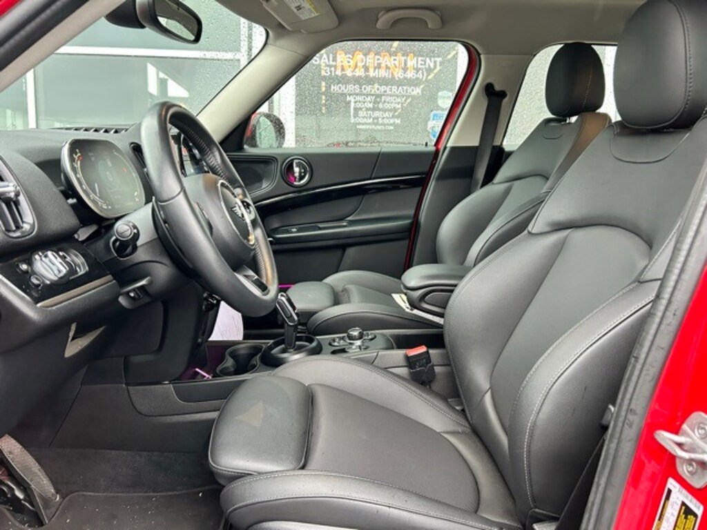 This Cooper S Countryman is well equipped with Signature Trim (MINI Navigation, Advanced Real-Time Traffic Information, Auto-Dimming Rear-View Mirror, Cloth/Leatherette Upholstery, Power-Folding Mirrors, and Roof in Body Color), Classic Trim, Storage Package, Apple CarPlay Compatibility, Front dual zone A/C w/pollen filter, Heated Front Seats, Heated Steering Wheel, Illuminated entry, Power moonroof, Power Tailgate, Remote keyless entry, Sirius XM Satellite Radio, Wheels: 18" x 7.5" Pair Spoke Alloy, 4-Wheel Disc Brakes, 6 Speakers, ABS brakes, Air Conditioning, AM/FM Radio, AM/FM radio: SiriusXM, Auto High-beam Headlights, Automatic temperature control, Axle Ratio: 3.20, Brake assist, Bumpers: body-color, ConnectedDrive Services, Delay-off headlights, Driver door bin, Driver vanity mirror, Dual front impact airbags, Dual front side impact airbags, Electronic Stability Control, Emergency communication system: MINI Assist eCall, Enhanced USB & Bluetooth, Exterior Parking Camera Rear, Four wheel independent suspension, Front anti-roll bar, Front Center Armrest w/Storage, Front fog lights, Front reading lights, Front Sport Seats, Fully automatic headlights, Heated door mirrors, Heated front seats, Knee airbag, Leather steering wheel, Low tire pressure warning, MINI Assist eCall, MINI Connected, MINI Driving Modes, MINI TeleServices, Occupant sensing airbag, Outside temperature display, Overhead airbag, Overhead console, Passenger door bin, Passenger Seat Height Adjustment, Passenger vanity mirror, Power door mirrors, Power steering, Power windows, Radio data system, Rain sensing wipers, Rear anti-roll bar, Rear window defroster, Rear window wiper, Remote Services, Sensatec Leatherette Upholstery, Speed control, Speed-sensing steering, Speed-Sensitive Wipers, Split folding rear seat, Sport steering wheel, Standard Suspension, Steering wheel mounted audio controls, Tachometer, Telescoping steering wheel, Tilt steering wheel, Traction control, Trip computer, and Variably intermittent wipers.