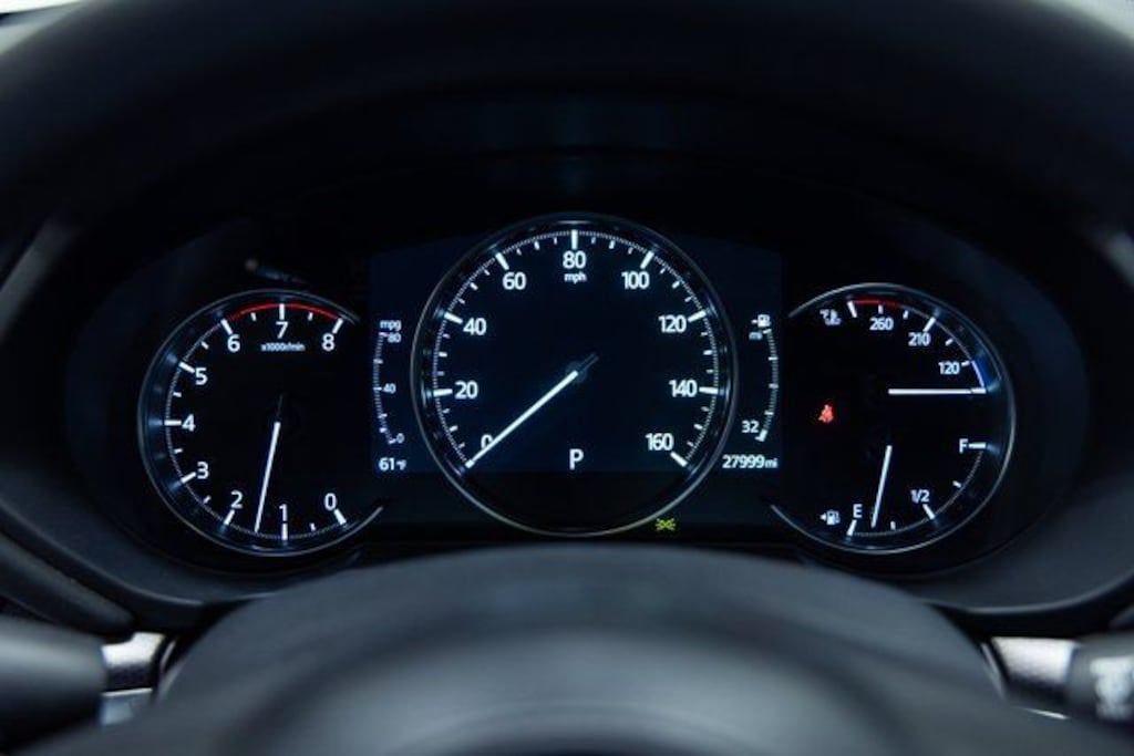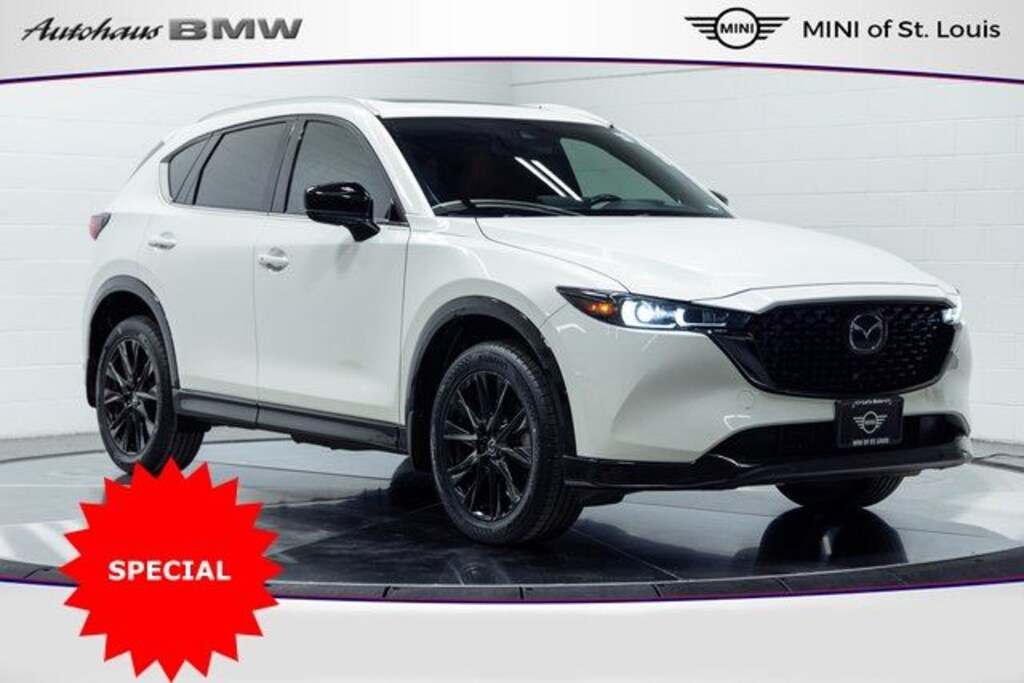 This Mazda CX-5 is well equipped with AppLink/Apple CarPlay and Android Auto, Exterior Parking Camera Rear, Heads-Up Display, Heated front seats, Power moonroof, Rain sensing wipers, Terracotta Leather Seat Trim, Ventilated front seats, 10 Speakers, 4-Wheel Disc Brakes, 4.411 Axle Ratio, ABS brakes, Air Conditioning, Alloy wheels, AM/FM radio: SiriusXM, Auto High-beam Headlights, Auto-dimming Rear-View mirror, Automatic temperature control, Black Lug Nuts & Black Wheel Locks, Brake assist, Bumpers: body-color, Carbon Edition License Plate Frame, Cargo Tray, Delay-off headlights, Driver door bin, Driver vanity mirror, Dual front impact airbags, Dual front side impact airbags, E911 Automatic Emergency Notification, Electronic Stability Control, Emergency communication system: MAZDA CONNECT, Four wheel independent suspension, Front & Rear Splash Guards, Front anti-roll bar, Front Bucket Seats, Front Center Armrest w/Storage, Front dual zone A/C w/pollen filter, Front reading lights, Fully automatic headlights, Garage door transmitter: HomeLink, Heated door mirrors, Heated/Ventilated Front Bucket Seats, Illuminated entry, Infotainment System Voice Command, Leather Shift Knob, Leather steering wheel, Low tire pressure warning, Memory seat, Multifunction Commander Control, Occupant sensing airbag, Outside temperature display, Overhead airbag, Overhead console, Pandora, Panic alarm, Passenger door bin, Passenger vanity mirror, Power door mirrors, Power driver seat, Power Liftgate, Power passenger seat, Power steering, Power windows, Radio Broadcast Data System Program Information, Radio data system, Radio: AM/FM/HD Audio System, Rear anti-roll bar, Rear Bumper Guard, Rear reading lights, Rear seat center armrest, Rear window defroster, Rear window wiper, Remote keyless entry, Retractable Cargo Cover, Rhodium White Metallic Paint, Roof Rack Side Rails, SMS Text Msg Audio Delivery & Reply, Speed control, Speed-sensing steering, Split folding rear seat, Spoiler, Steering wheel mounted audio controls, Tachometer, Telescoping steering wheel, Tilt steering wheel, Traction control, Trip computer, Turn signal indicator mirrors, Variably intermittent wipers, and Wheels: 19" x 7J Aluminum Alloy.