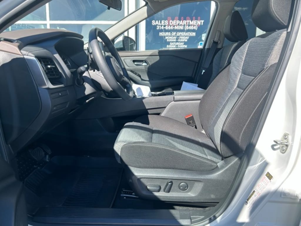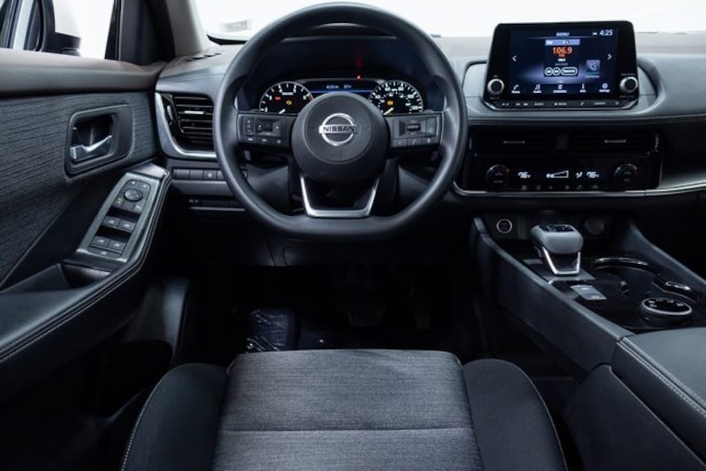This Rogue is well equipped with 18" Aluminum Alloy Wheels, 4-Wheel Disc Brakes, 5.604 Axle Ratio, 6 Speakers, ABS brakes, Air Conditioning, Alloy wheels, AM/FM Radio, AM/FM radio, Auto High-beam Headlights, Automatic temperature control, Black Splash Guards (Set of 4), Brake assist, Bumpers: body-color, Chrome Rear Bumper Protector, Cloth Seat Trim, Delay-off headlights, Driver door bin, Driver vanity mirror, Dual front impact airbags, Dual front side impact airbags, Electronic Stability Control, Emergency communication system: NissanConnect Services, First Aid Kit, Floor Mats w/1-Piece Cargo Area Protector, Four wheel independent suspension, Front anti-roll bar, Front Bucket Seats, Front Center Armrest, Front dual zone A/C w/pollen filter, Front reading lights, Fully automatic headlights, Heated door mirrors, Illuminated entry, Knee airbag, Low tire pressure warning, NissanConnect featuring Apple CarPlay and Android Auto, Occupant sensing airbag, Outside temperature display, Overhead airbag, Overhead console, Panic alarm, Passenger door bin, Passenger vanity mirror, Power door mirrors, Power driver seat, Power steering, Power windows, Radio data system, Rear anti-roll bar, Rear Parking Sensors, Rear seat center armrest, Rear side impact airbag, Rear window defroster, Rear window wiper, Remote keyless entry, Security system, Speed control, Speed-Sensitive Wipers, Split folding rear seat, Spoiler, Steering wheel mounted audio controls, Tachometer, Telescoping steering wheel, Tilt steering wheel, Traction control, Trip computer, Turn signal indicator mirrors, and Variably intermittent wipers.