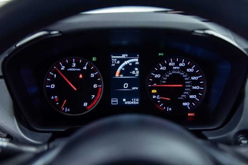 This WRX is well equipped with Standard Model (6MT), Front dual zone A/C w/pollen filter, Remote keyless entry, 4-Wheel Disc Brakes, 6 Speakers, ABS brakes, Air Conditioning, Alloy wheels, AM/FM radio: SiriusXM, Auto High-beam Headlights, Auto-dimming Rear-View mirror, Automatic temperature control, Brake assist, Bumpers: body-color, Cloth Upholstery w/Red Stitching, Driver door bin, Driver vanity mirror, Dual front impact airbags, Dual front side impact airbags, Electronic Stability Control, Emergency communication system: STARLINK Safety and Security (Subscription Required), Exterior Parking Camera Rear, Four wheel independent suspension, Front anti-roll bar, Front Bucket Seats, Front Center Armrest, Front fog lights, Front reading lights, Fully automatic headlights, Heated door mirrors, Heated front seats, Illuminated entry, Knee airbag, Leather Shift Knob, Leather steering wheel, Low tire pressure warning, Occupant sensing airbag, Outside temperature display, Overhead airbag, Overhead console, Panic alarm, Passenger door bin, Passenger vanity mirror, Performance Design Heated Front Bucket Seats, Power door mirrors, Power steering, Power windows, Radio data system, Radio: Subaru STARLINK 11.6" Multimedia Plus Sys, Rear anti-roll bar, Rear seat center armrest, Rear window defroster, Security system, Side Sill Plates - Illuminated, Speed control, Speed-sensing steering, Split folding rear seat, Spoiler, Sport steering wheel, STARLINK/Apple CarPlay/Android Auto, Steering wheel mounted audio controls, Tachometer, Telescoping steering wheel, Tilt steering wheel, Traction control, Trip computer, Variably intermittent wipers, and Wheels: 18" x 8.5" Dark Gray Finish Alum Alloy.