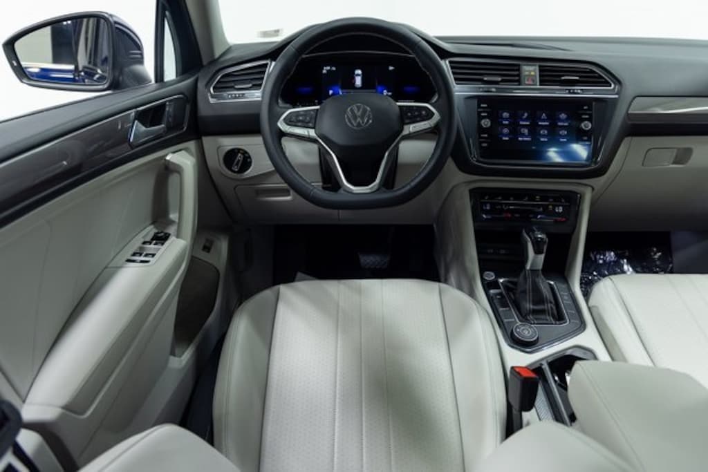 This Tiguan is well equipped with Panoramic Sunroof Package, Exterior Parking Camera Rear, Heated front seats, Power Liftgate, Rain sensing wipers, 2-Row Rubber Monster Mats w/Logo Kit (Set of 4), 3.33 Axle Ratio, 4-Wheel Disc Brakes, 4-Wheel Independent Suspension, 6 Speakers, ABS brakes, Air Conditioning, Alloy wheels, AM/FM radio: SiriusXM with 360L, Auto-dimming Rear-View mirror, Auto-Dimming Rearview Mirror w/HomeLink Connect (DISC), Automatic temperature control, Brake assist, Bumpers: body-color, Cargo Area Retractable Privacy Cover, Compass, Delay-off headlights, Driver door bin, Driver vanity mirror, Dual front impact airbags, Dual front side impact airbags, Electronic Stability Control, Emergency communication system: Car-Net, First Aid Kit, Four wheel independent suspension, Front anti-roll bar, Front Bucket Seats, Front Center Armrest, Front dual zone A/C w/pollen filter, Front reading lights, Fully automatic headlights, Heated door mirrors, Heated Front Comfort Seats, Heavy Duty Trunk Liner w/VW CarGo Blocks, Illuminated entry, Leather Shift Knob, Low tire pressure warning, Occupant sensing airbag, Outside temperature display, Overhead airbag, Overhead console, Panic alarm, Passenger door bin, Passenger vanity mirror, Perforated V-Tex Leatherette Seating Surfaces, Power door mirrors, Power driver seat, Power steering, Power windows, Radio data system, Radio: MIB3 Composition Media AM/FM/HD, Rear anti-roll bar, Rear reading lights, Rear seat center armrest, Rear window defroster, Rear window wiper, Remote keyless entry, Roadside Assistance Kit, Roof rack: rails only, Security system, Speed control, Speed-sensing steering, Split folding rear seat, Spoiler, Steering wheel mounted audio controls, Tachometer, Telescoping steering wheel, Tilt steering wheel, Traction control, Trip computer, Turn signal indicator mirrors, Variably intermittent wipers, VW Care, and Wheels: 18" Dark Graphite 10-Spoke Alloy.